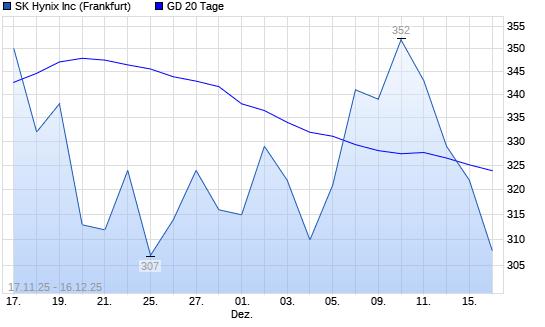 Mit dem Rücksetzer auf 322,00 EUR hat die SK Hynix-Aktie am 15.12.2025 die 20-Tage-Linie nach unten gekreuzt.
