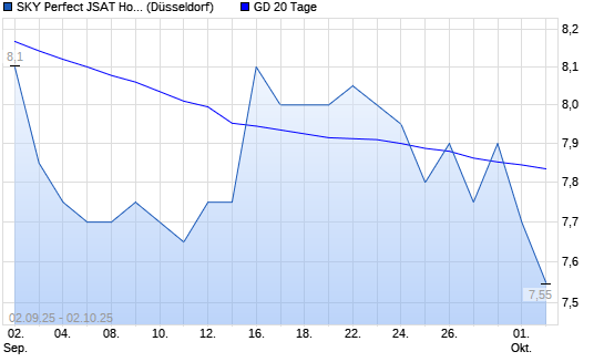 Mit dem Rücksetzer auf 7,65 EUR hat die SKY Perfect JSAT Holdings-Aktie am 01.10.2025 die 20-Tage-Linie nach unten gekreuzt.