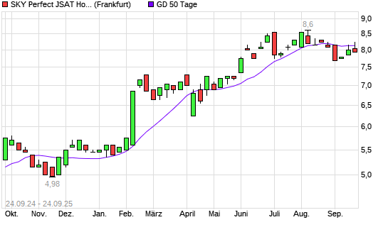 Mit dem Rücksetzer auf 8,05 EUR hat die SKY Perfect JSAT Holdings-Aktie am 23.09.2025 die 50-Tage-Linie nach unten gekreuzt.