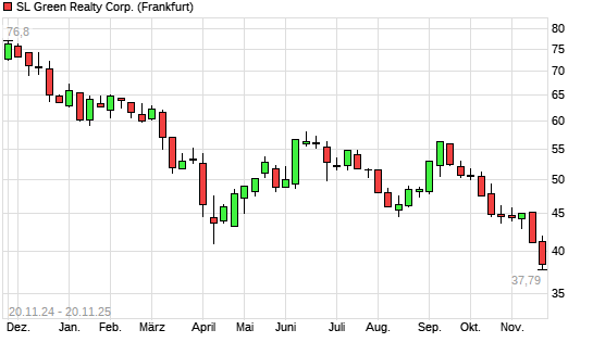Mit dem Rücksetzer auf 38,10 EUR hat die SL Green Realty-Aktie (ISIN US78440X8873) am 19.11.2025 ein neues 12-Monats-Tief erreicht und damit den Kurs vom 18.11.2025 eingestellt.