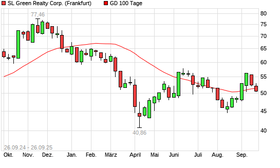 Mit dem Rücksetzer auf 51,02 EUR hat die SL Green Realty-Aktie am 25.09.2025 die 100-Tage-Linie nach unten gekreuzt.