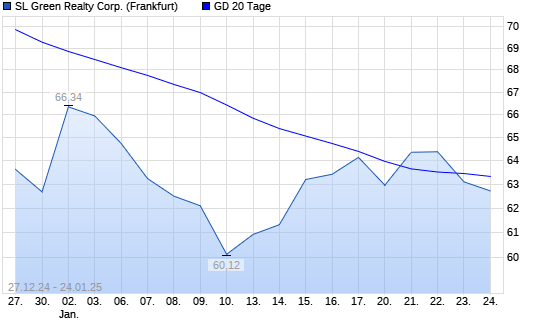 Mit dem Rücksetzer auf 63,10 EUR hat die SL Green Realty-Aktie am 23.01.2025 die 20-Tage-Linie nach unten gekreuzt.