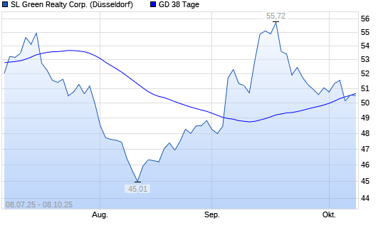 Mit dem Anstieg auf 50,66 EUR hat die SL Green Realty-Aktie am 07.10.2025 die 38-Tage-Linie nach oben gekreuzt.Die SL Green Realty-Aktie befindet sich seit dem 17.09.2025 im langfristigen Abwärtstrend ...weiterlesen