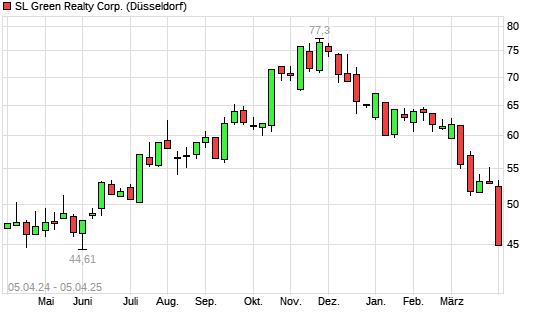 Mit dem Rücksetzer auf 46,16 EUR hat die SL Green Realty-Aktie (ISIN US78440X8873) am 04.04.2025 ein neues 6-Monats-Tief erreicht und damit den Kurs vom 03.04.2025 eingestellt.Die SL Green ...weiterlesen