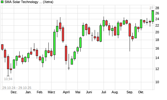 Mit dem Anstieg auf 26,84 EUR hat die SMA Solar-Aktie (ISIN DE000A0DJ6J9) am 28.10.2025 ein neues 12-Monats-Hoch erreicht und damit den Kurs vom 27.10.2025 eingestellt.