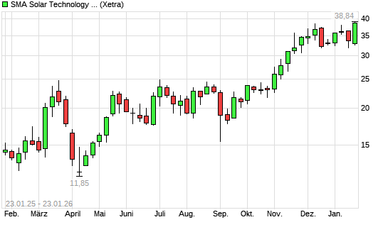 Mit dem Anstieg auf 37,82 EUR hat die SMA Solar-Aktie (ISIN DE000A0DJ6J9) am 22.01.2026 ein neues 12-Monats-Hoch erreicht und damit den Kurs vom 07.01.2026 eingestellt.