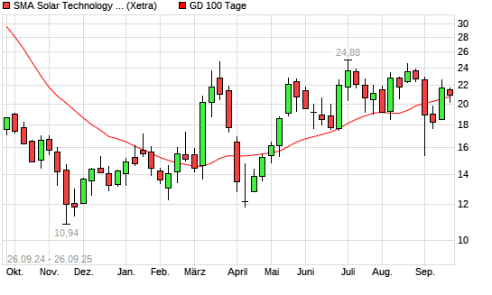 Mit dem Anstieg auf 20,78 EUR hat die SMA Solar-Aktie am 25.09.2025 die 100-Tage-Linie nach oben gekreuzt.