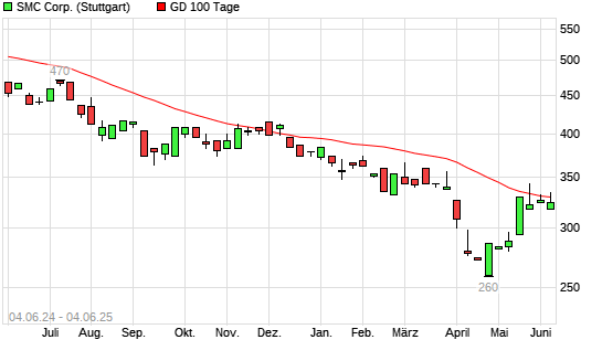 Mit dem Anstieg auf 334,00 EUR hat die SMC-Aktie am 03.06.2025 die 100-Tage-Linie nach oben gekreuzt.
