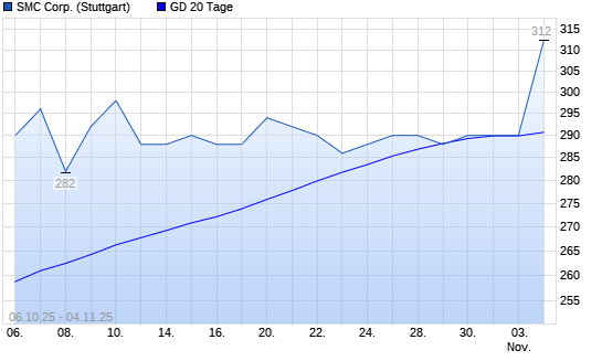 Mit dem Rücksetzer auf 290,00 EUR hat die SMC-Aktie am 03.11.2025 die 20-Tage-Linie nach unten gekreuzt.