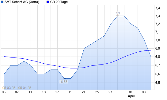 Mit dem Rücksetzer auf 6,80 EUR hat die SMT Scharf-Aktie am 04.04.2025 die 20-Tage-Linie nach unten gekreuzt.