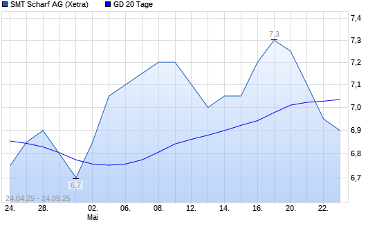 Mit dem Rücksetzer auf 6,80 EUR hat die SMT Scharf-Aktie am 23.05.2025 die 20-Tage-Linie nach unten gekreuzt.