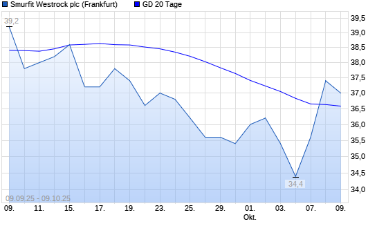 Mit dem Anstieg auf 37,40 EUR hat die SMURFIT WESTROCK-Aktie am 08.10.2025 die 20-Tage-Linie nach oben gekreuzt.
