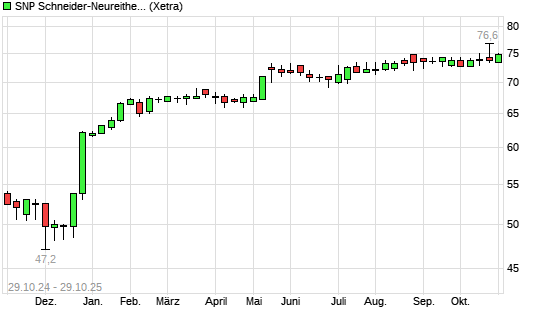 Mit dem Anstieg auf 74,80 EUR hat die SNP-Aktie (ISIN DE0007203705) am 28.10.2025 ein neues All-Time-High erreicht und damit den Kurs vom 17.10.2025 eingestellt.