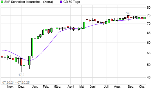 Mit dem Rücksetzer auf 73,00 EUR hat die SNP-Aktie am 06.10.2025 die 50-Tage-Linie nach unten gekreuzt.