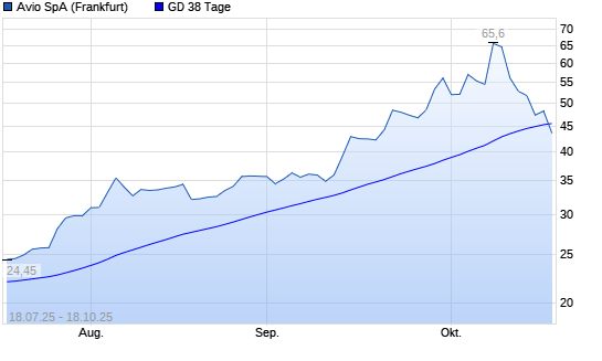 Mit dem Rücksetzer auf 43,55 EUR hat die SPACE2 S.P.A.-Aktie am 17.10.2025 die 38-Tage-Linie nach unten gekreuzt.