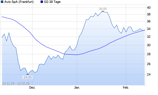 Mit dem Rücksetzer auf 33,60 EUR hat die SPACE2 S.P.A.-Aktie am 11.02.2026 die 38-Tage-Linie nach unten gekreuzt.