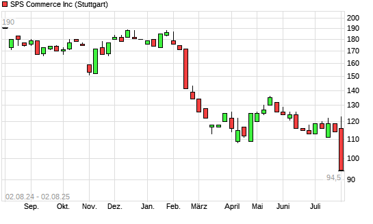 Mit dem Rücksetzer auf 94,50 EUR hat die SPS Commerce-Aktie (ISIN US78463M1071) am 01.08.2025 ein neues 3-Jahres-Tief erreicht und damit den Kurs vom 09.04.2025 eingestellt.