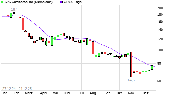 Mit dem Anstieg auf 77,50 EUR hat die SPS Commerce-Aktie am 23.12.2025 die 50-Tage-Linie nach oben gekreuzt.Die SPS Commerce-Aktie befindet sich seit dem 31.01.2025 im langfristigen Abwärtstrend ...weiterlesen