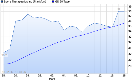Mit dem Anstieg auf 38,00 EUR hat die SPYRE THERAPEUTICS-Aktie am 17.03.2026 die 20-Tage-Linie nach oben gekreuzt.