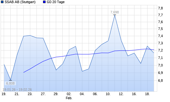 Mit dem Rücksetzer auf 7,09 EUR hat die SSAB-Aktie am 18.02.2026 die 20-Tage-Linie nach unten gekreuzt.