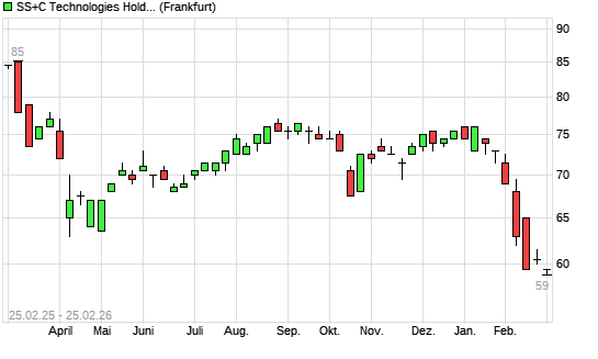 Mit dem Rücksetzer auf 59,00 EUR hat die SS&C Technologies-Aktie (ISIN US78467J1007) am 24.02.2026 ein neues 12-Monats-Tief erreicht und damit den Kurs vom 13.02.2026 eingestellt.
