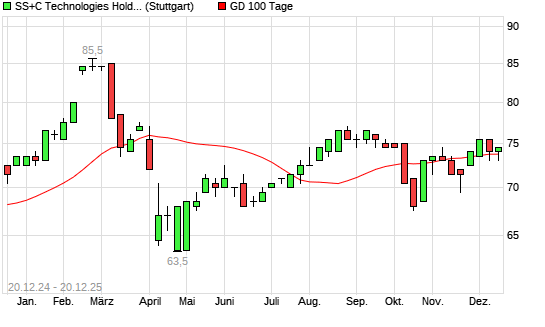 Mit dem Anstieg auf 74,50 EUR hat die SS&C Technologies-Aktie am 19.12.2025 die 100-Tage-Linie nach oben gekreuzt.
