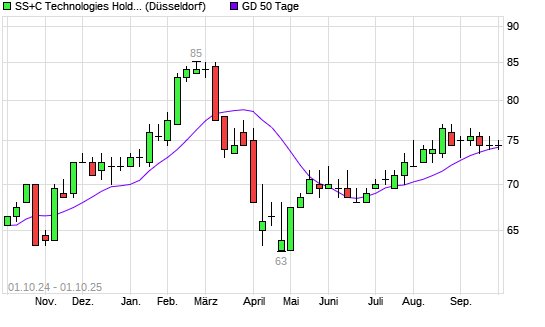 Mit dem Anstieg auf 75,00 EUR hat die SS&C Technologies-Aktie am 30.09.2025 die 50-Tage-Linie nach oben gekreuzt.