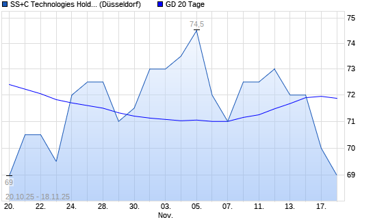 Mit dem Rücksetzer auf 71,50 EUR hat die SS&C Technologies-Aktie am 17.11.2025 die 20-Tage-Linie nach unten gekreuzt.