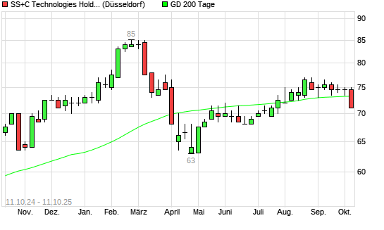 Mit dem Rücksetzer auf 73,00 EUR hat die SS&C Technologies-Aktie am 10.10.2025 die 200-Tage-Linie nach unten gekreuzt.