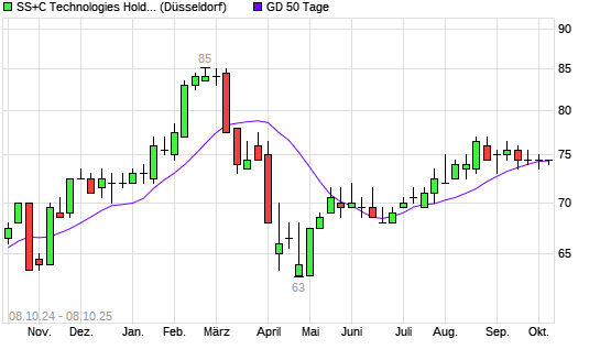 Mit dem Rücksetzer auf 74,50 EUR hat die SS&C Technologies-Aktie am 07.10.2025 die 50-Tage-Linie nach unten gekreuzt.