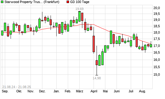Mit dem Anstieg auf 17,17 EUR hat die STARWOOD PROPERTY TRUST-Aktie am 20.08.2025 die 100-Tage-Linie nach oben gekreuzt.