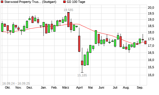 Mit dem Rücksetzer auf 17,24 EUR hat die STARWOOD PROPERTY TRUST-Aktie am 15.09.2025 die 100-Tage-Linie nach unten gekreuzt.