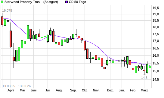 Mit dem Rücksetzer auf 15,26 EUR hat die STARWOOD PROPERTY TRUST-Aktie am 12.03.2026 die 50-Tage-Linie nach unten gekreuzt.