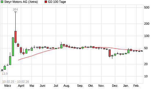 Mit dem Anstieg auf 43,20 EUR hat die STEYR MOTORS AG-Aktie am 09.02.2026 die 100-Tage-Linie nach oben gekreuzt.