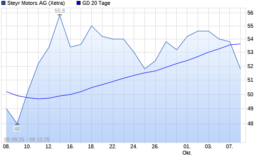 Mit dem Rücksetzer auf 52,20 EUR hat die STEYR MOTORS AG-Aktie am 07.10.2025 die 20-Tage-Linie nach unten gekreuzt.