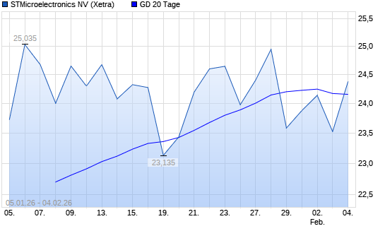 Mit dem Anstieg auf 24,32 EUR hat die STMicroelectronics-Aktie am 03.02.2026 die 20-Tage-Linie nach oben gekreuzt.