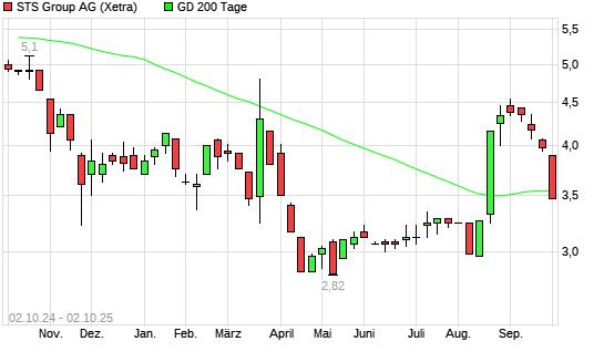 Mit dem Rücksetzer auf 3,40 EUR hat die STS Group-Aktie am 01.10.2025 die 200-Tage-Linie nach unten gekreuzt.