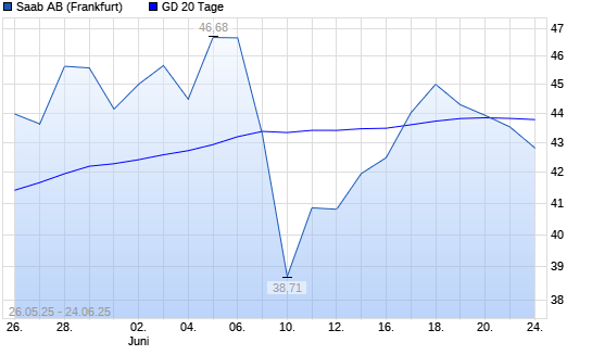 Mit dem Rücksetzer auf 43,52 EUR hat die Saab AB-Aktie am 23.06.2025 die 20-Tage-Linie nach unten gekreuzt.
