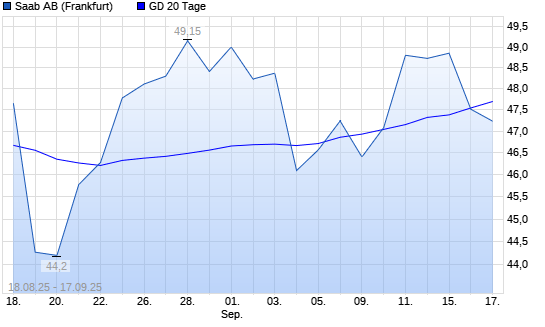 Mit dem Rücksetzer auf 47,51 EUR hat die Saab AB-Aktie am 16.09.2025 die 20-Tage-Linie nach unten gekreuzt.
