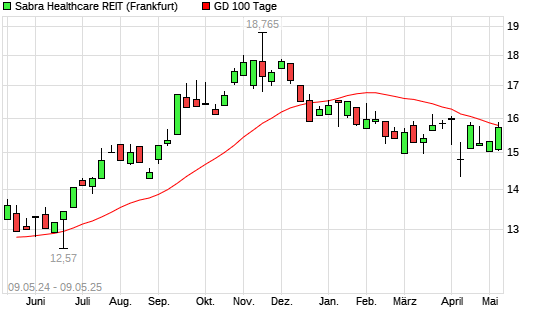 Mit dem Anstieg auf 15,91 EUR hat die Sabra Healthcare-Aktie am 08.05.2025 die 100-Tage-Linie nach oben gekreuzt.