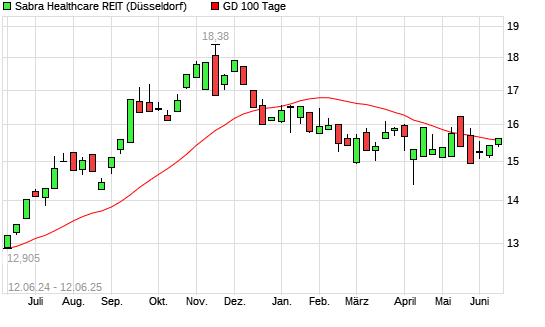 Mit dem Anstieg auf 15,59 EUR hat die Sabra Healthcare-Aktie am 11.06.2025 die 100-Tage-Linie nach oben gekreuzt.