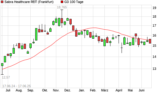 Mit dem Anstieg auf 15,63 EUR hat die Sabra Healthcare-Aktie am 16.06.2025 die 100-Tage-Linie nach oben gekreuzt.