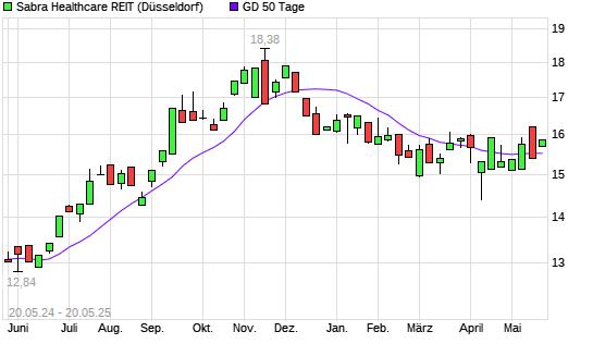 Mit dem Anstieg auf 15,70 EUR hat die Sabra Healthcare-Aktie am 19.05.2025 die 50-Tage-Linie nach oben gekreuzt.