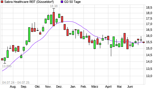 Mit dem Anstieg auf 15,51 EUR hat die Sabra Healthcare-Aktie am 03.07.2025 die 50-Tage-Linie nach oben gekreuzt.