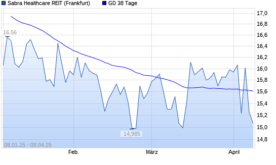 Mit dem Rücksetzer auf 15,10 EUR hat die Sabra Healthcare-Aktie am 07.04.2025 die 38-Tage-Linie nach unten gekreuzt.