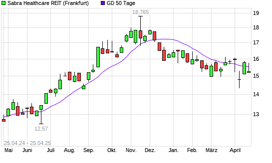 Mit dem Rücksetzer auf 15,31 EUR hat die Sabra Healthcare-Aktie am 24.04.2025 die 50-Tage-Linie nach unten gekreuzt.