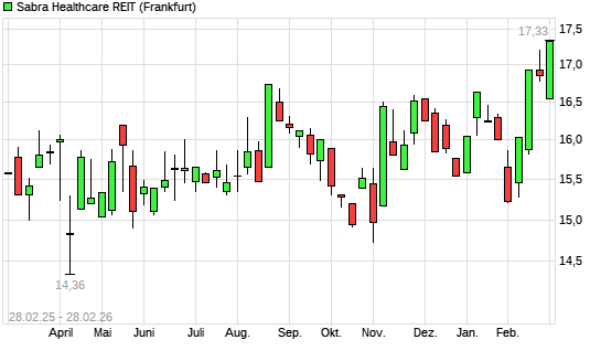 Mit dem Anstieg auf 17,33 EUR hat die Sabra Healthcare-Aktie (ISIN US78573L1061) am 27.02.2026 ein neues 12-Monats-Hoch erreicht und damit den Kurs vom 18.02.2026 eingestellt.Die ...weiterlesen