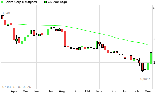 Die Sabre-Aktie befand sich seit dem 05.03.2026 im langfristigen Aufwärtstrend und hat in diesem Zeitraum -15,22% an Wert verloren.