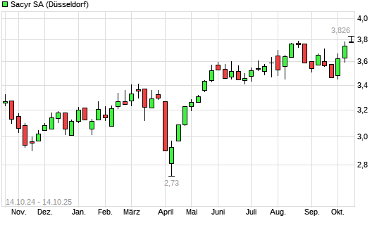 Mit dem Anstieg auf 3,79 EUR hat die Sacyr Vallehermoso S.A. Acciones Port.-Aktie (ISIN ES0182870214) am 13.10.2025 ein neues 10-Jahres-Hoch erreicht und damit den Kurs vom 18.08.2025 eingestellt.