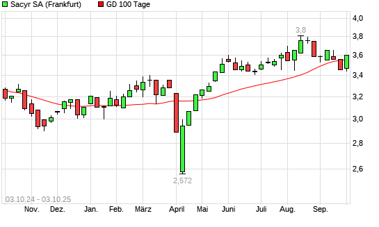 Mit dem Anstieg auf 3,60 EUR hat die Sacyr Vallehermoso S.A. Acciones Port.-Aktie am 02.10.2025 die 100-Tage-Linie nach oben gekreuzt.